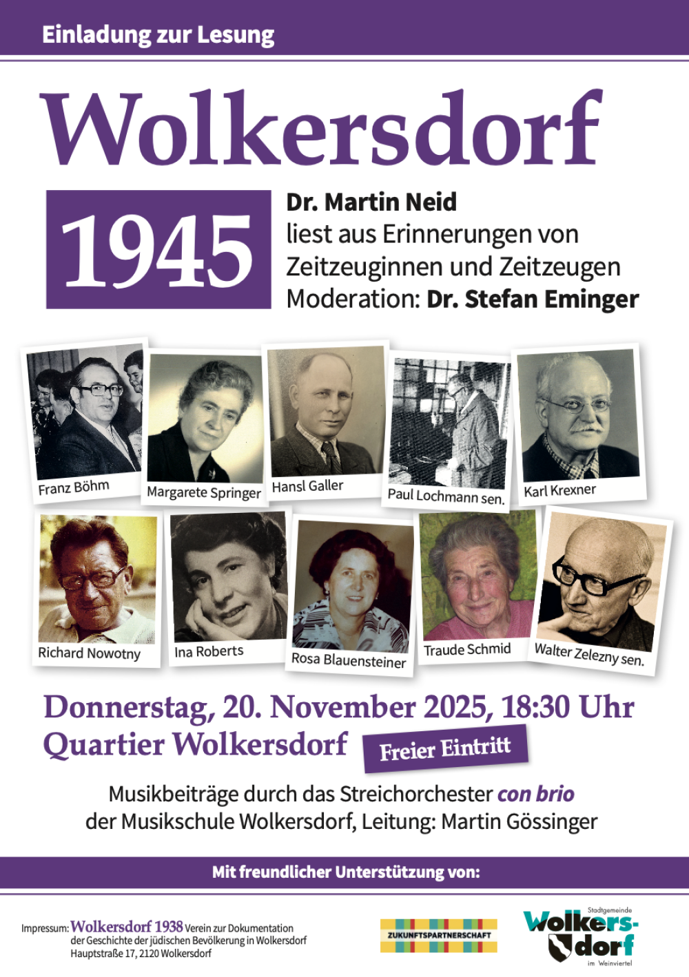Herzliche EINLADUNG zur Lesung. Dr. Marrin Neid liest aus der Erinnerung von Zeitzeugen.